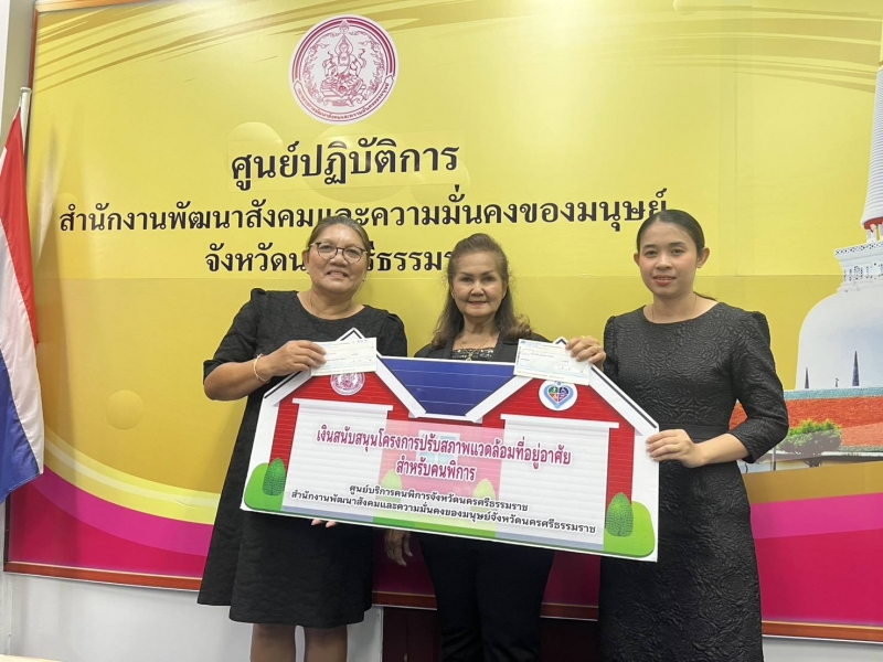 นายณัฐกร รักษาวงศ์ นายกเทศมนตรีตำบลท่ายาง มอบหมายให้ นางสาวนุจรี ช่วยคุ้ม รองนายกเทศมนตรีตำบลท่ายาง และนางสุนันต์ แก้วฤทธิ์ ผู้อำนวยการกองสวัสดิการสังคม รับเงินอุดหนุนสนับสนุนการปรับสภาพแวดล้อมที่อยู่อาศัยสำหรับคนพิการ ประจำปีงบประมาณ 2569 จำนวน 1 หลัง รายนายจรูญรัตน์ จันทวงค์ จำนวนเงิน 40,000 บาท และ 17,000 บาท รวมเป็นเงิน 57,000 บาท ณ สำนักงานพัฒนาสังคมและความมั่นคงของมนุษย์ จ.นครศรีธรรมราช