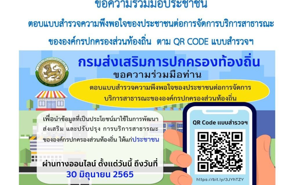 ขอความร่วมมือตอบแบบสำรวจความพึงพอใจของประชาชนต่อการจัดการบริการสาธารณะขององค์กรปกครองส่วนท้องถิ่น ผ่านทางออนไลน์